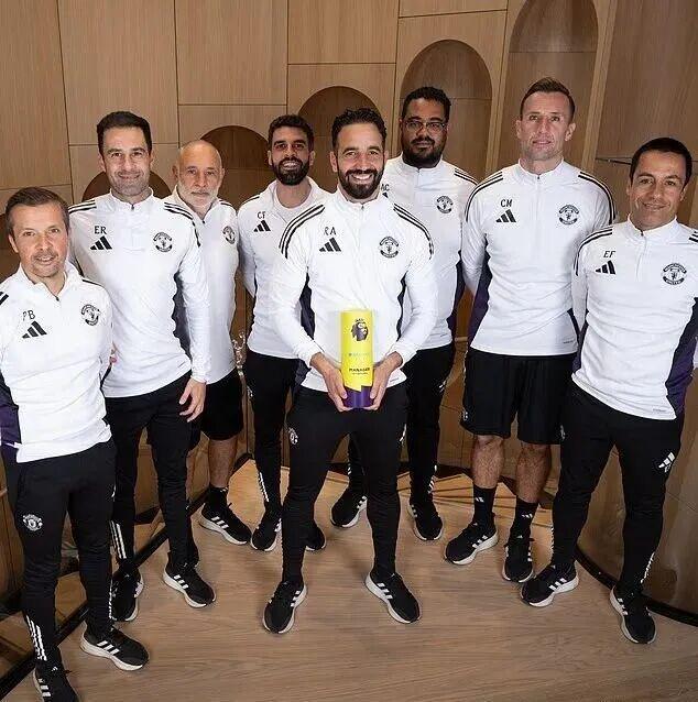 还有一些阿森纳球迷声称,他们故意在投票中“搞破坏”,因为据说这个奖项背后有“诅咒”。一些迷信的支持者认为,赢得该奖项可能会带来厄运,比如状态下滑、进球荒或伤病增加。阿莫林今天似乎并不担心任何诅咒,他与曼联前锋贝乌莫合影时笑容满面。 这位喀麦隆国脚被评为英超10月最佳球员。这些奖项是对曼联上月出色表现的认可,尤其是他们在安菲尔德2-1战胜利物浦的比赛。